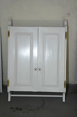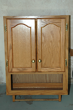 Two wall-mounted wooden cabinets that typically go above a toilet in the bathroom to hold miscellaneous stuff. $10 each or both for $15.