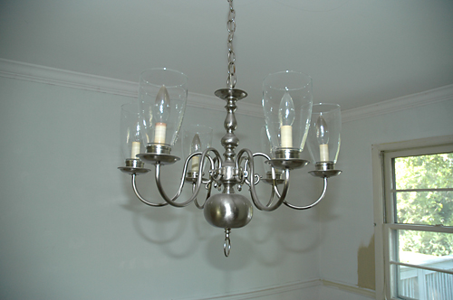 Dining Room Fixtures Brushed nickel fixture - $25. One of the glass hurricanes broke, so you will need to go to a lighting store for a new one, or use the fixture without them (you don't need them).